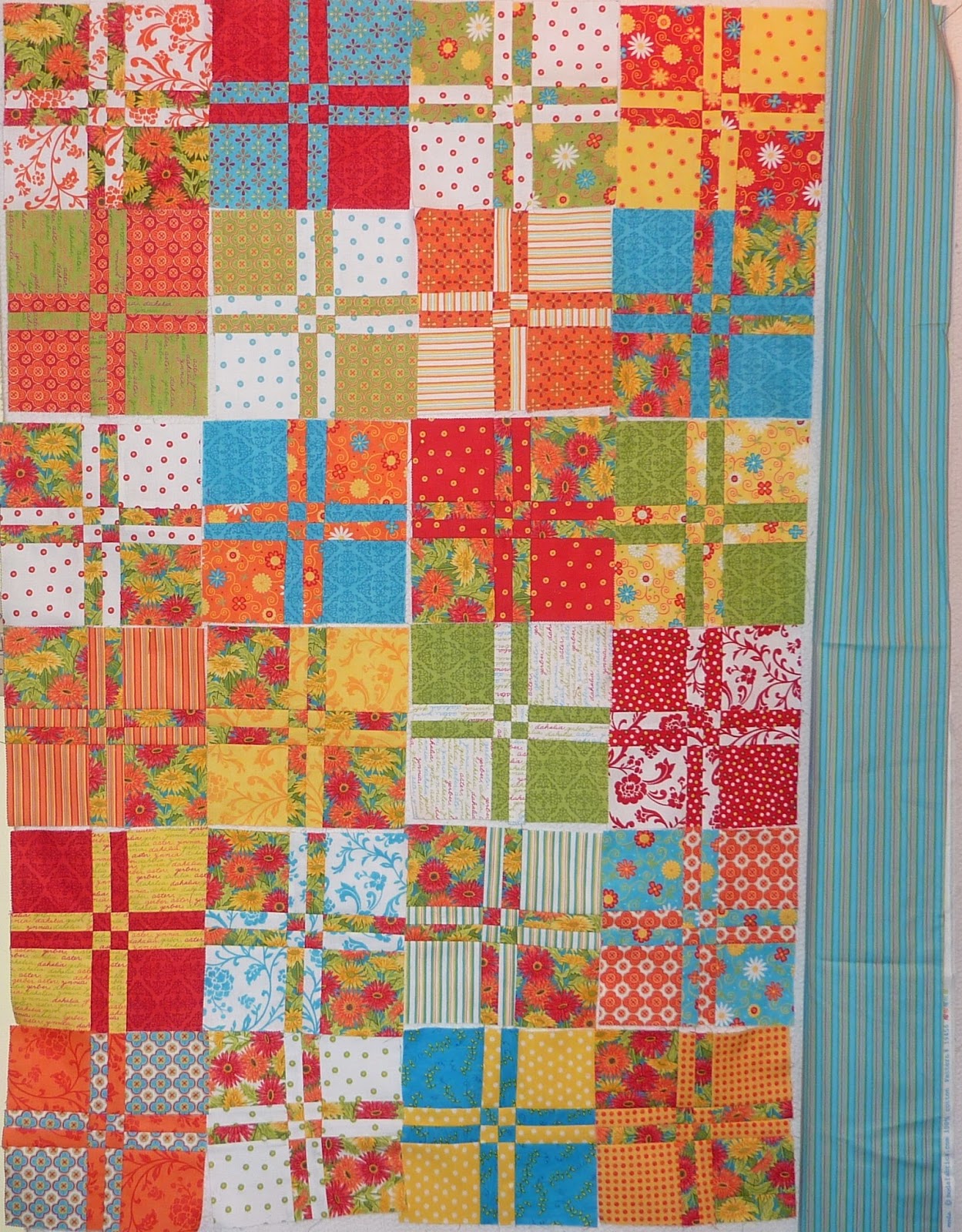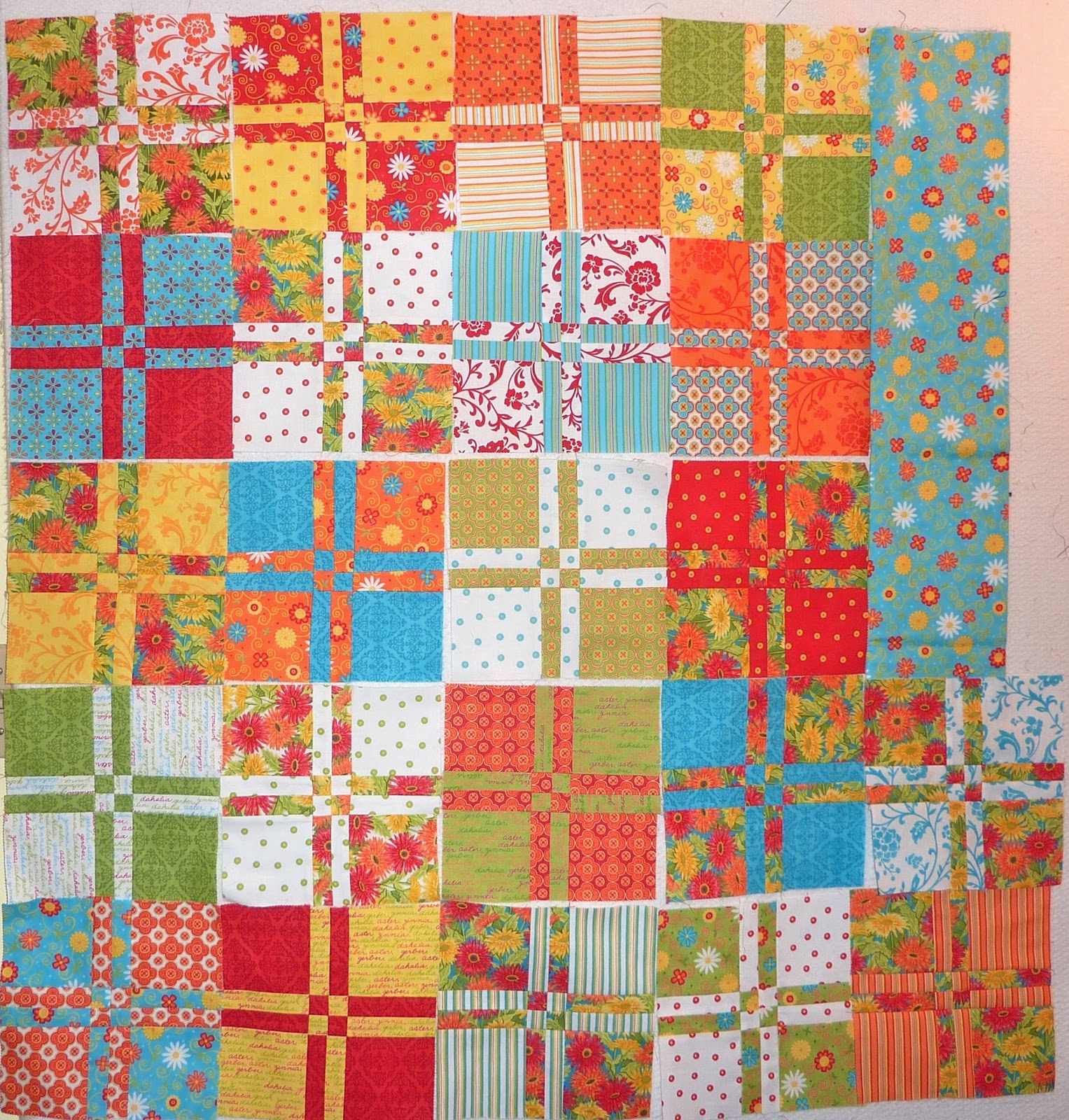 My Disappearing 4 Patch blocks are finally sewn together. It's a fun block to play with and uses up charm squares - the tutorial is here.