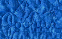 I did wavy line quilting on the diagonals to emphasize the trip around the world design and it went fairly quickly. No problems with the quilting until I switched to Presencia thread to quilt the names of the wedding party in the border...then I had issues!