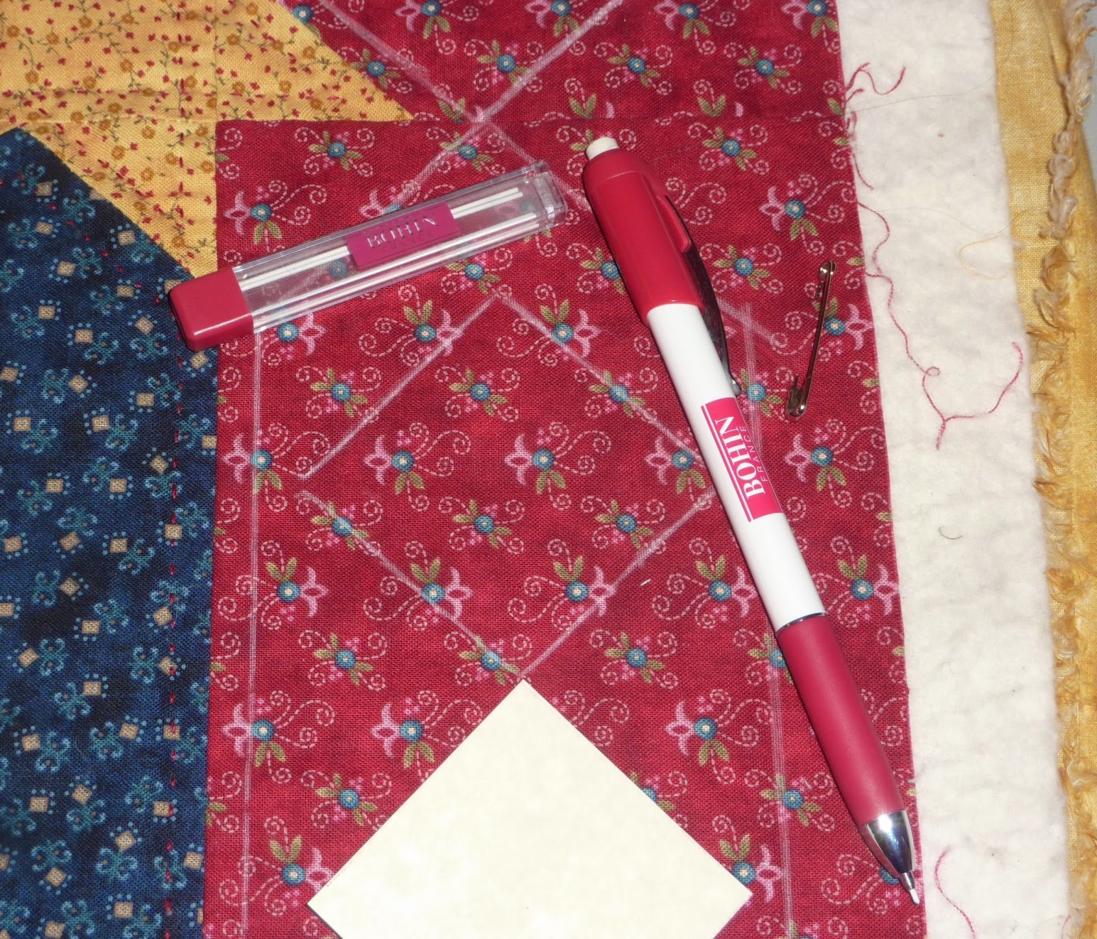 It was pin basted in 2015 and then the hand quilting was started. It's a really big quilt, and too hot to sit under in the summer, so it's a project I only work on in the winter. The time has come to put it away until the cool weather arrives again in the fall. This is the "high tech" chart I made to keep track of my stitching progress over the years.