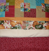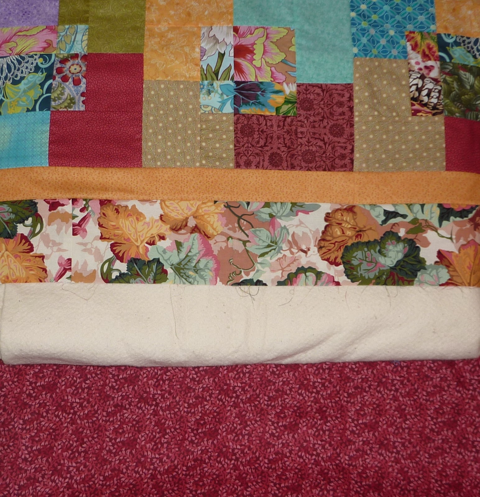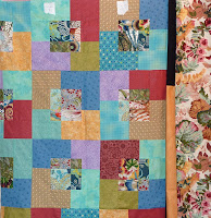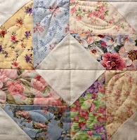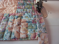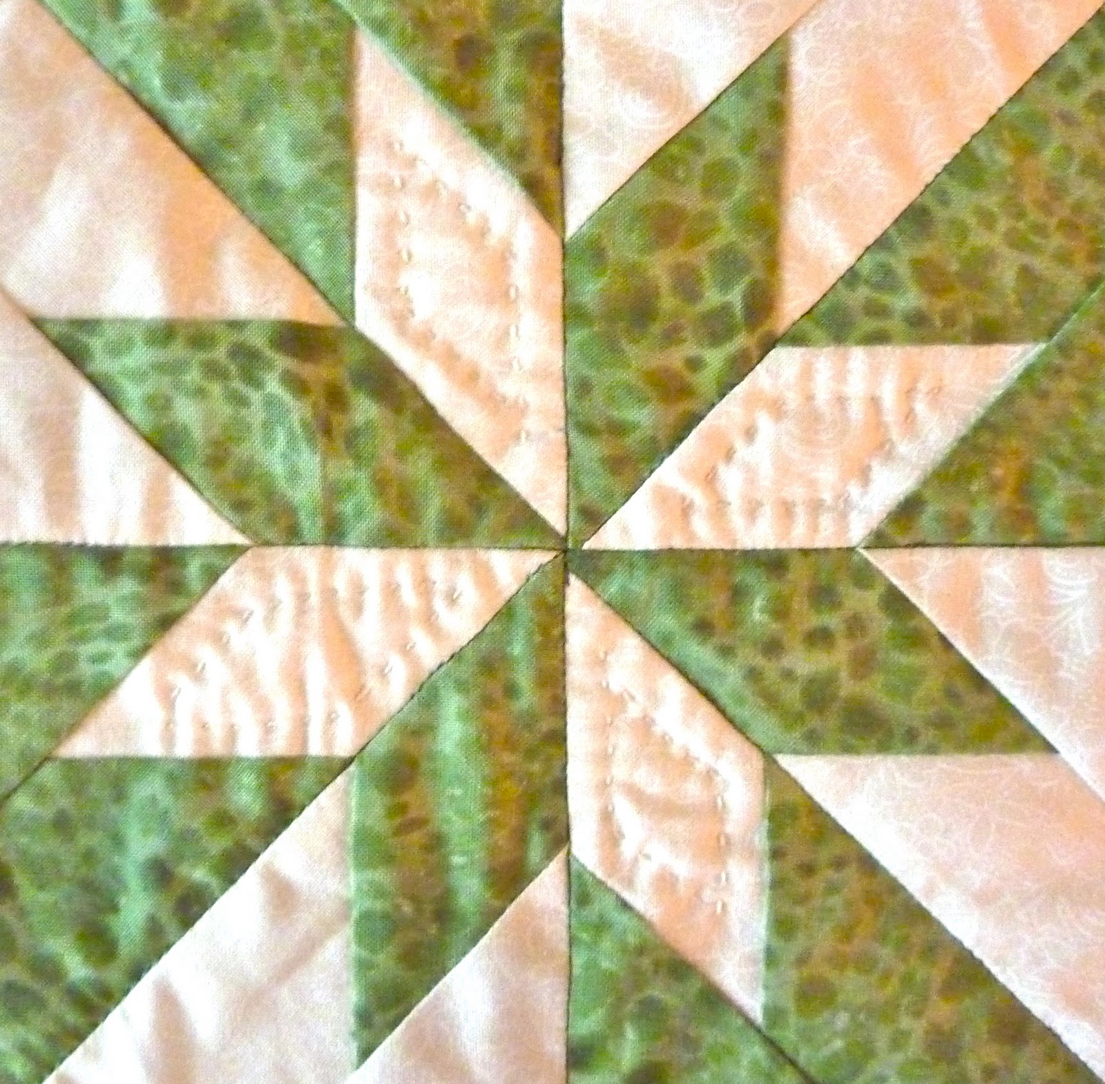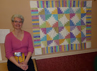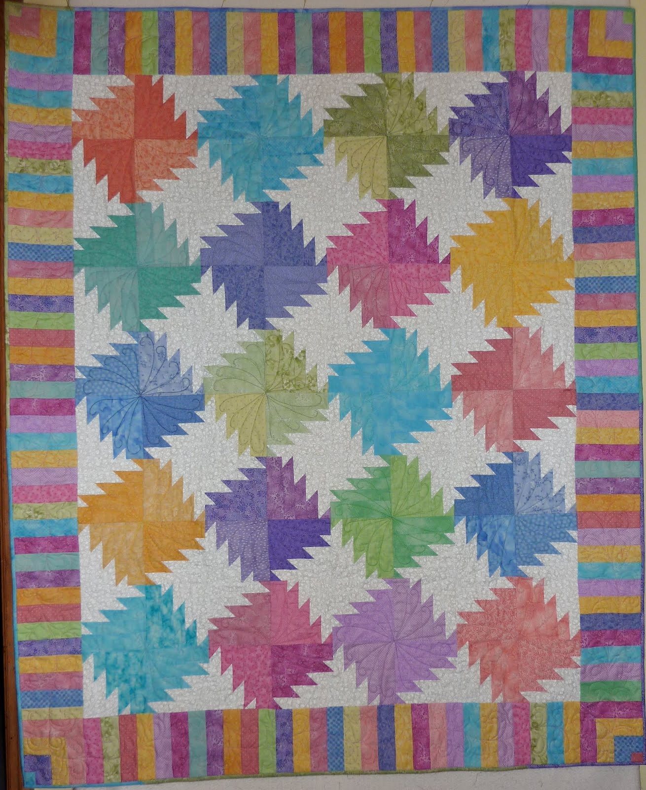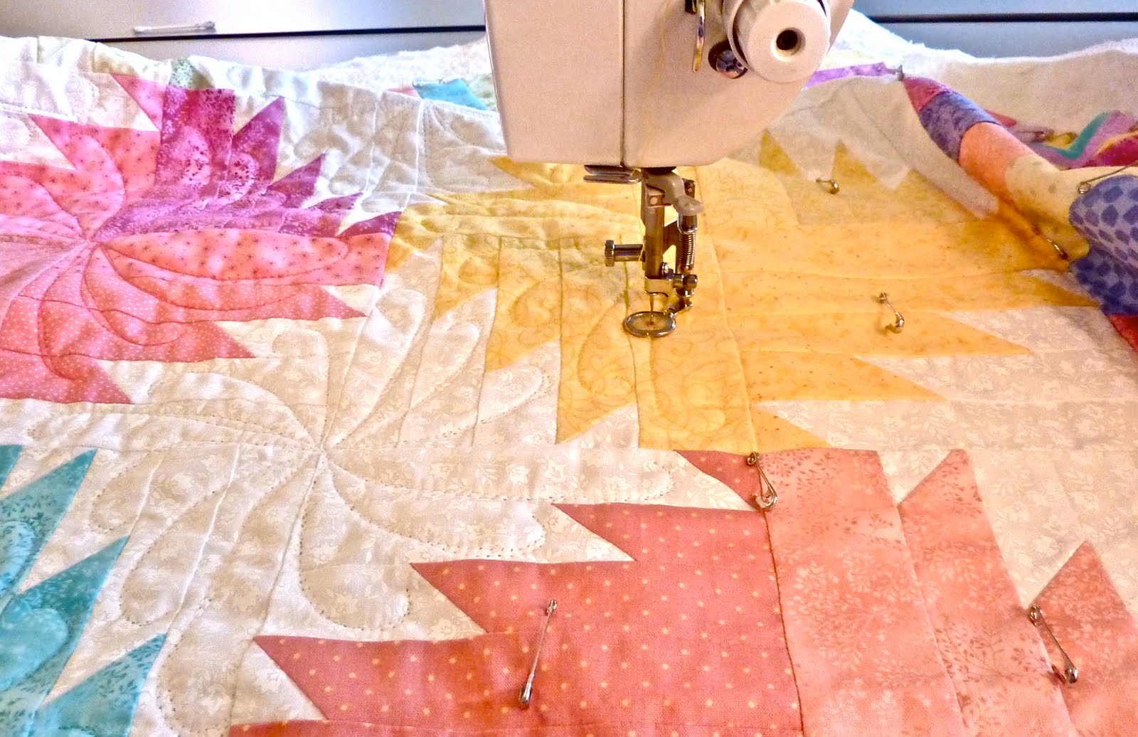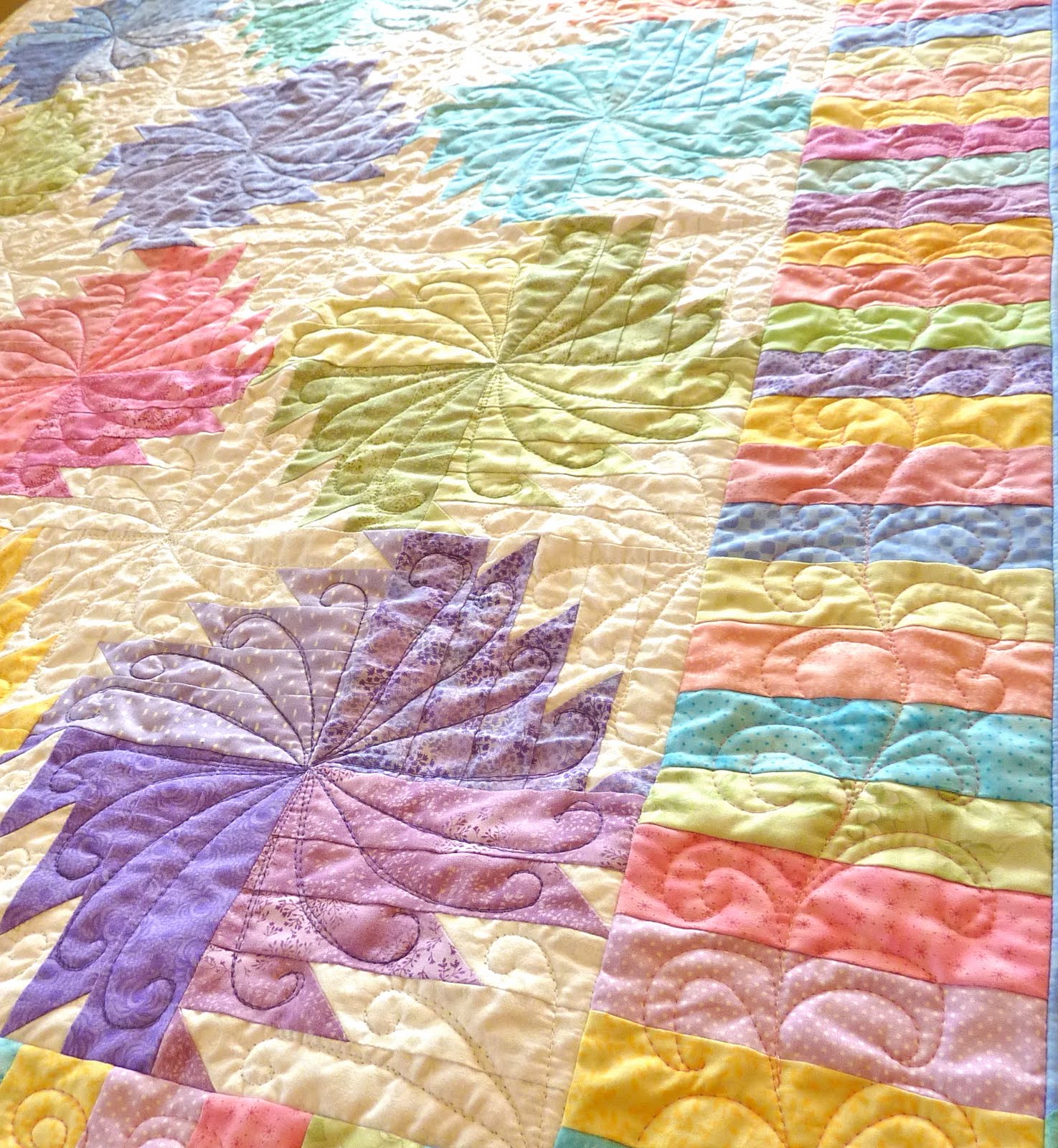 this case?!?!) thread, and each "blade" was quilted in a swirly feather design with a different coloured thread to match the fabrics. I had a challenge with my