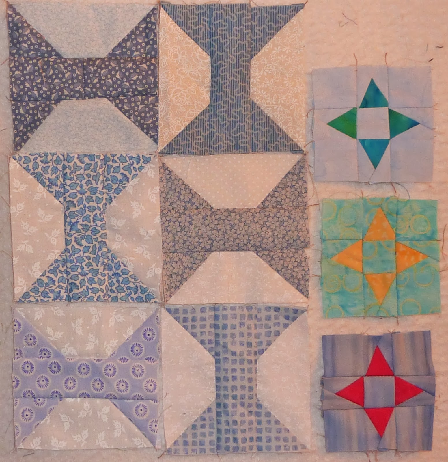 And while I'm doing that, I will keep on adding to my regular leader/ender projects. Here are a few more light blue spools and a couple Alamo Stars.