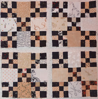I've also finished 4 brown blocks for the Omigosh collection.I have more than half of the double nine patch blocks finished now. That means about 1/4 of the piecing is done on this quilt - now that's progress.