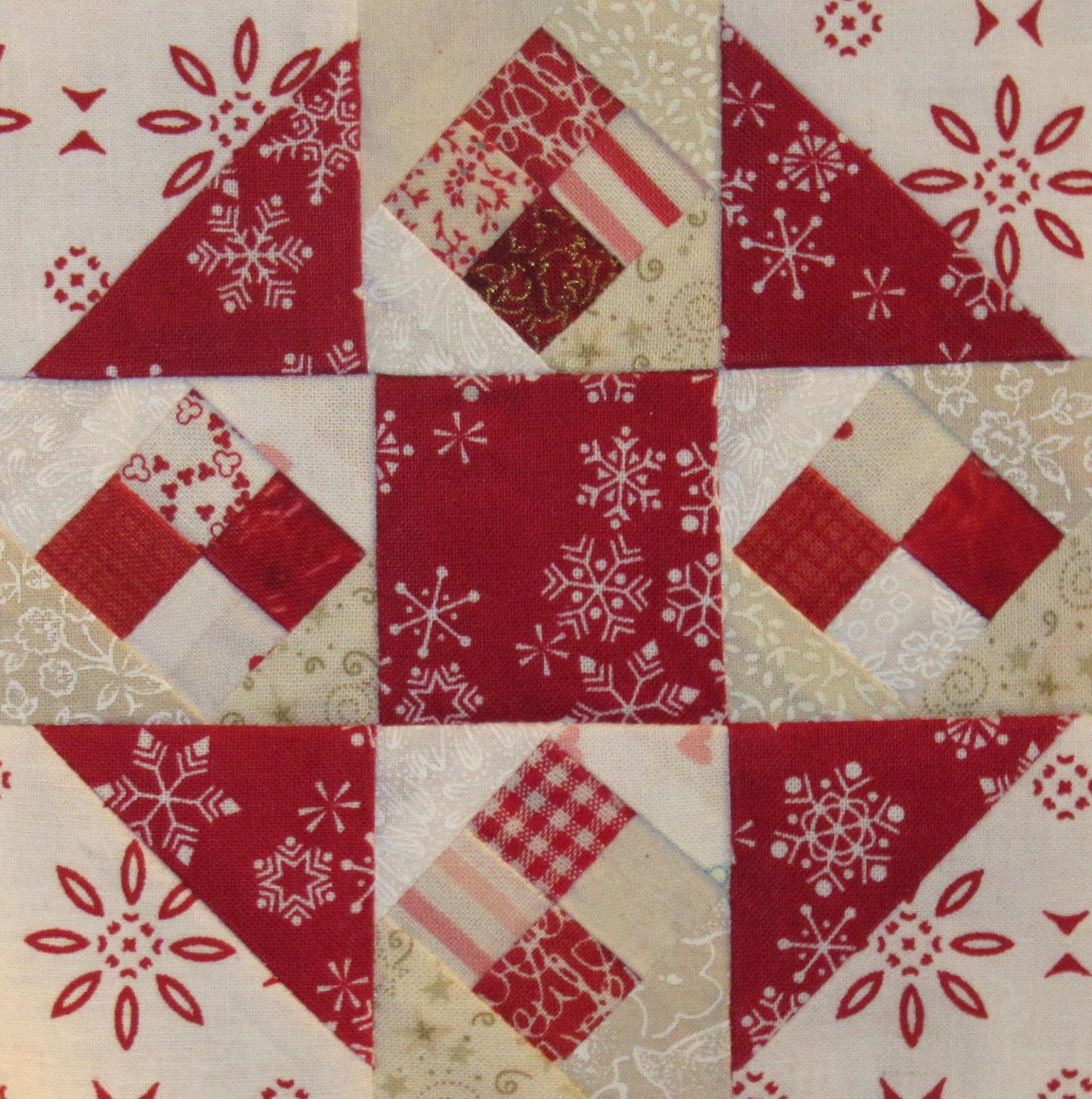 This block pattern ("Red Herring")is from Kristy at the Quiet Play blog. By the way, Kristy has a fun free BOM starting in January - Sew Kitschy.