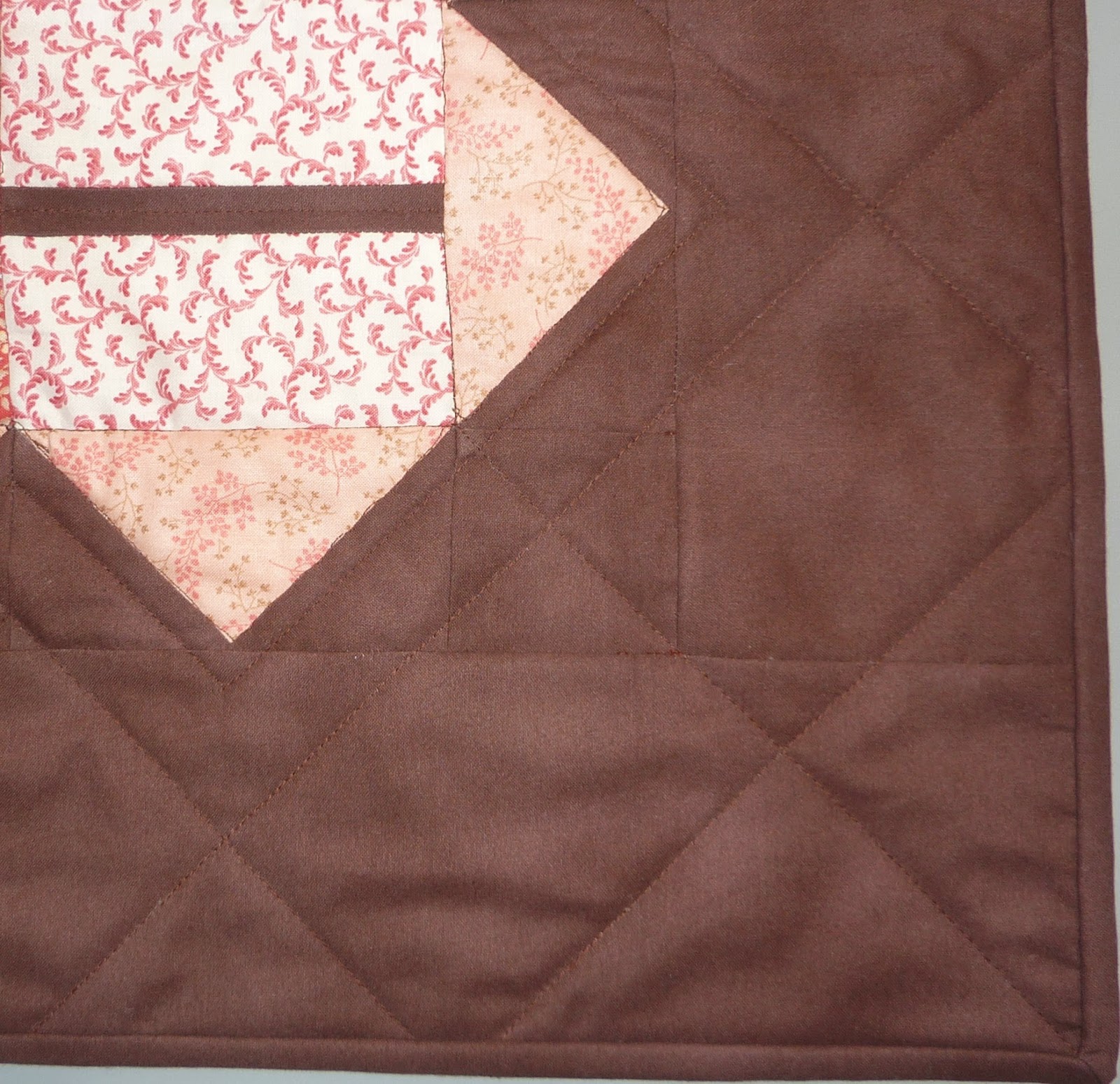 I don't often sew with solids, so using the brown for the border was a bit unusual for me, but I like it, particularly how well it shows the quilting. I do wish the corner quilting design met together in a way that the diamonds would be the same size as the diamonds that are down the rest of the borders. But the photo I took conveniently doesn't show that, and now I seem to like it more. It's funny how that happens! This is finished quilt #3 for 2015!