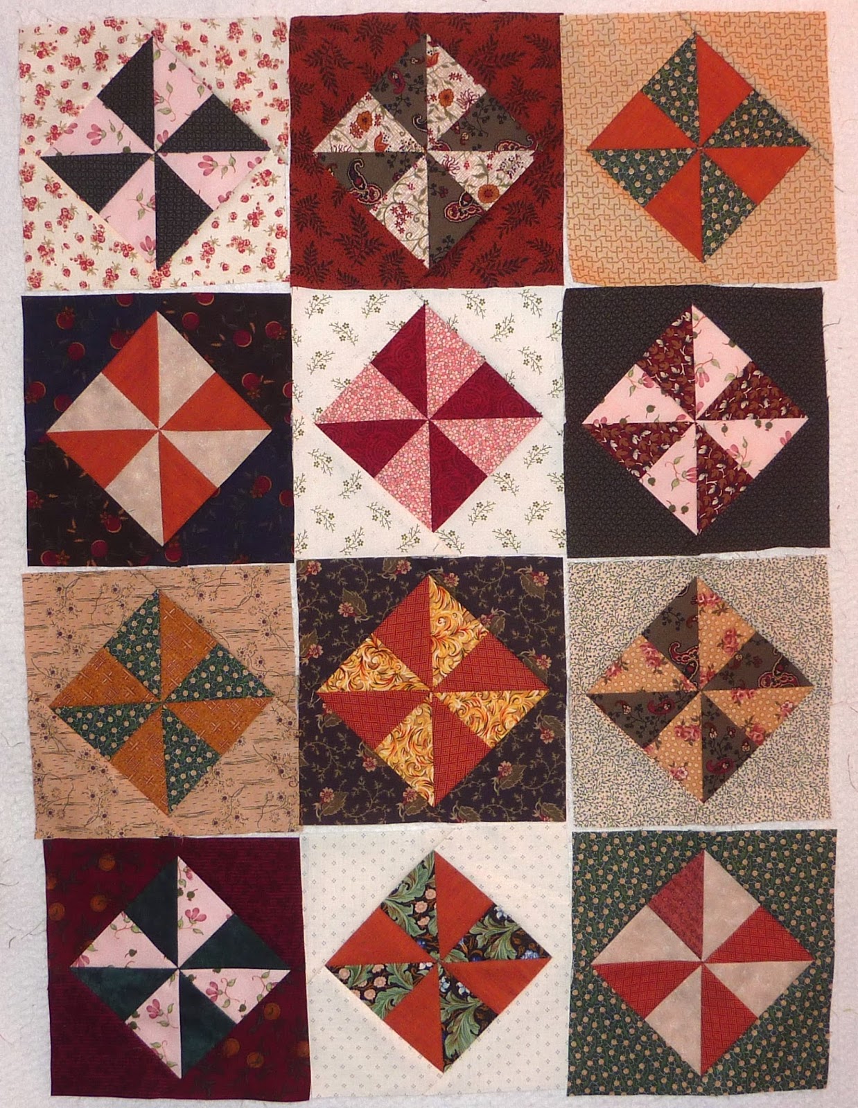 Here are the first dozen blocks up on the design wall today.
