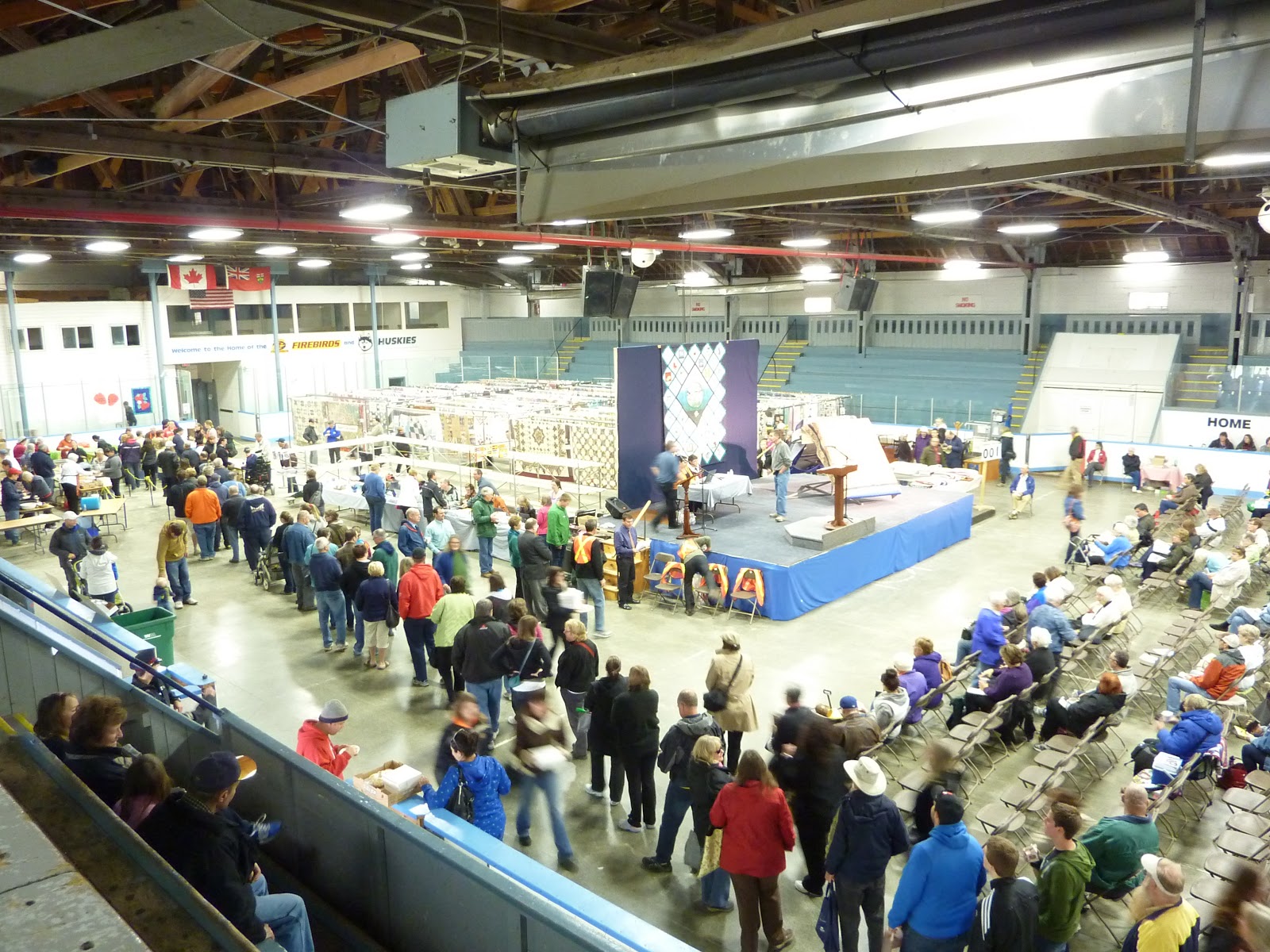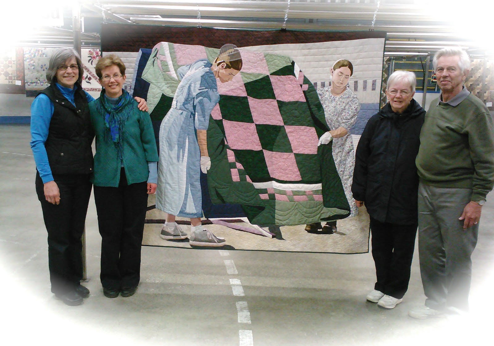 In the meantime, here are the photos. This is a shot of our group quilt being auctioned: