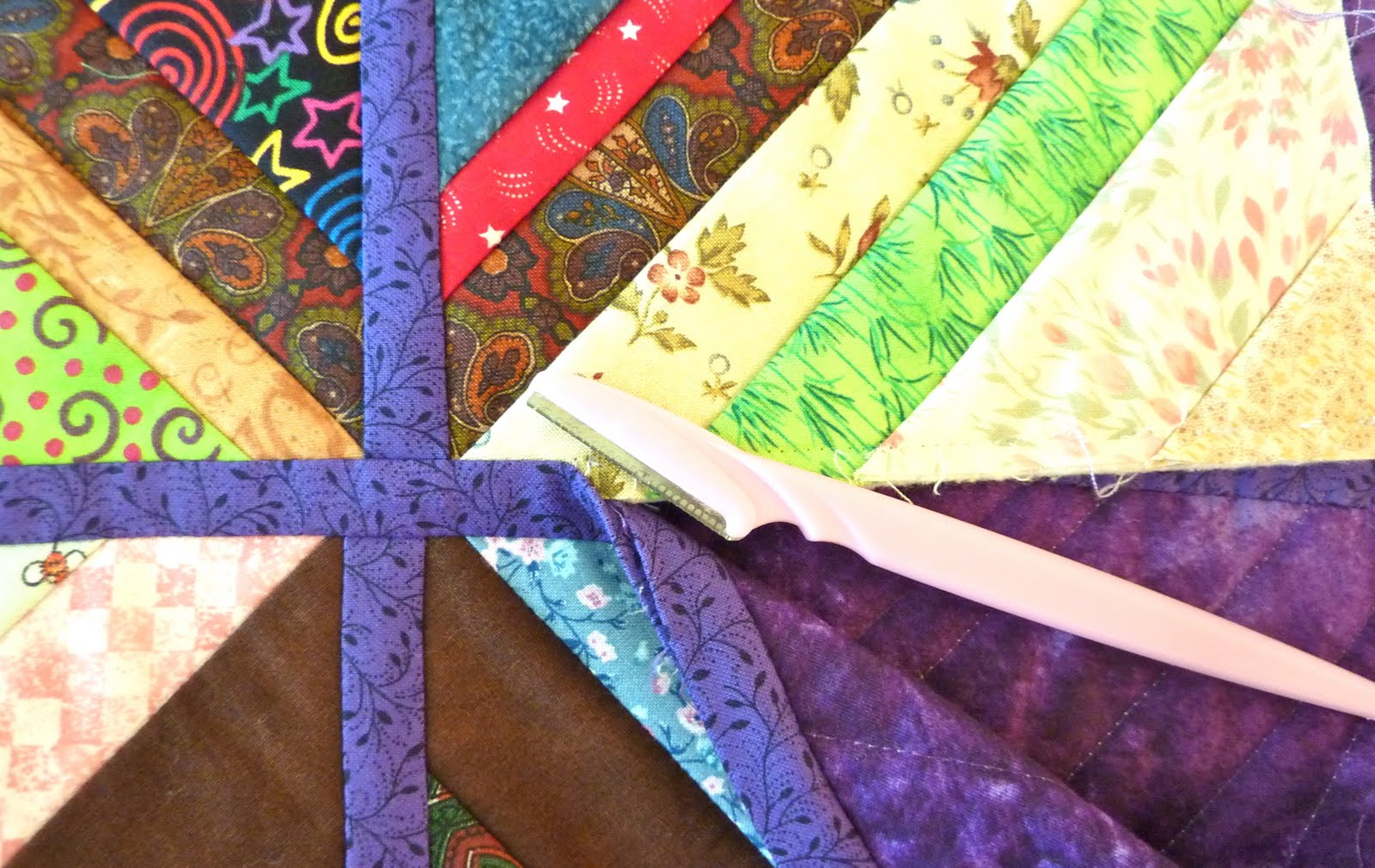 Quilt-as-you-go is a construction method I enjoy since it allows me to do all my own quilting, even on the largest quilts. These are two of my other quilts I have finished using this technique - Swoon, and Scrappy Memories.