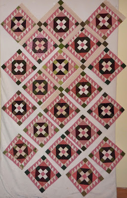 This is the largest quilt I've ever made and measures 93" x 84". It takes up the whole wall in my quilt studio! The photo isn't great because it was taken indoors at night, but you get the idea.