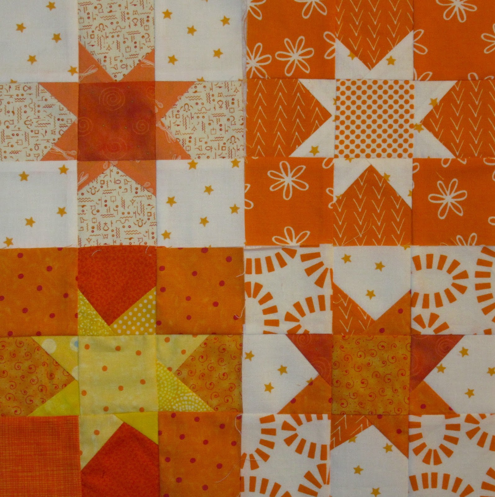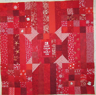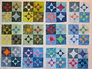Here are the 13 blocks on the design wall. I think I will make 7 more blocks for this quilt. Some colours are noticeably absent and I need to pay attention to this next year and maybe add a dark green, navy blue, a lighter red, brown, etc.