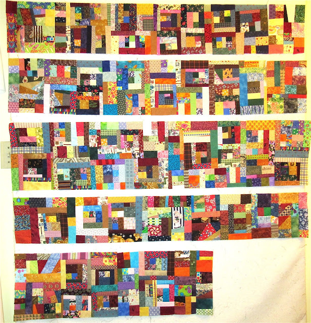 And here are all the blocks on the design wall. There are tons of little scraps in these blocks! I try to make each block a little different from all the others.