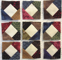 Clarissa is my hourglass leader-ender challenge that started with the quiltalong last summer at Quiltville. There is a new leader-ender challenge for this year, but I'm still working on this one. This project is inspired by a quilt from the 1800's made by Clarissa White Alford - see the quilt here. I just finished block #18.
