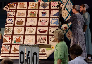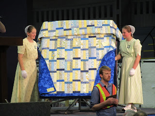 *****Tuesday update...apparently the newspaper misreported the amounts brought in. In this article, they must have been referring to the total amount of money raised by the event last year, not just the quilts. This year the quilt auction total was just $500 less than last year, which is good news for relief efforts of the Mennonite Central Committee!