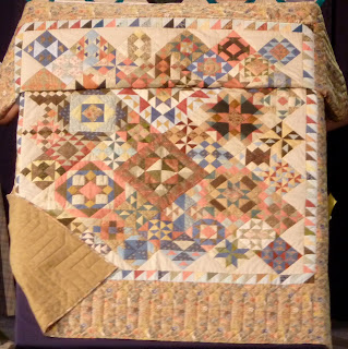 To see the blocks I made for this quilt - click here. This was a challenge for the quiltmakers to set together the great variety of blocks they received...some were set on pointe and some not.