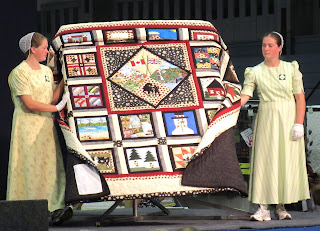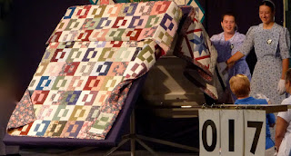 Added Information: In the newspaper today it said that the $25, 000 quilt was made by Mrs. Schlegel, an 87 year old woman, which she made while she was recovering from kidney surgery. It was purchased by her daughter who came from her home in Texas to attend the auction. The quilts from Mrs. Schlegel have raised more than $60,000 over the years! Now that's a goal to aim for ...let's beat Mrs. Schlegel's total! The total amount raised at this year's sale was $335,000 towards their goal of "alleviating global poverty and hunger"!