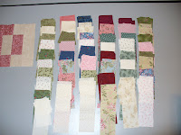 It is the beginning of a donation quilt to be ready for next year's quilt auction. My small sewing group (the Sew 'n Sews) have picked Bonnie Hunter's pattern called "Bricks and Stepping Stones" for our 4th donation quilt.