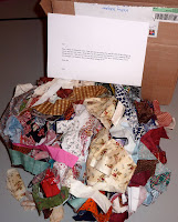 The first is that I received a box of scraps in the mail from Julie! Look at all these great fabric bits! Thanks for sharing your treasure Julie! They are going in my pile of things to take to quilt retreat at the end of February...yes, I'm starting to get my projects organized and compile my list of things I want to work on. It gives me something to think about when I can't fall asleep. These scraps are going to be sewn into string blocks that I have been working on for a couple of years. You can see some of my blocks and another pile of scraps in this post from 2007. I should soon have enough to start putting them together and am using the "quilt-as-you-go" technique.