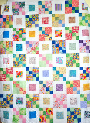 Continuing with my theme of scraps from yesterday's post,  this is the scrap quilt that my little quilt group ("the Sew 'n Sews") has been working on for the Mennonite Relief sale and quilt auction in the spring.