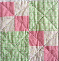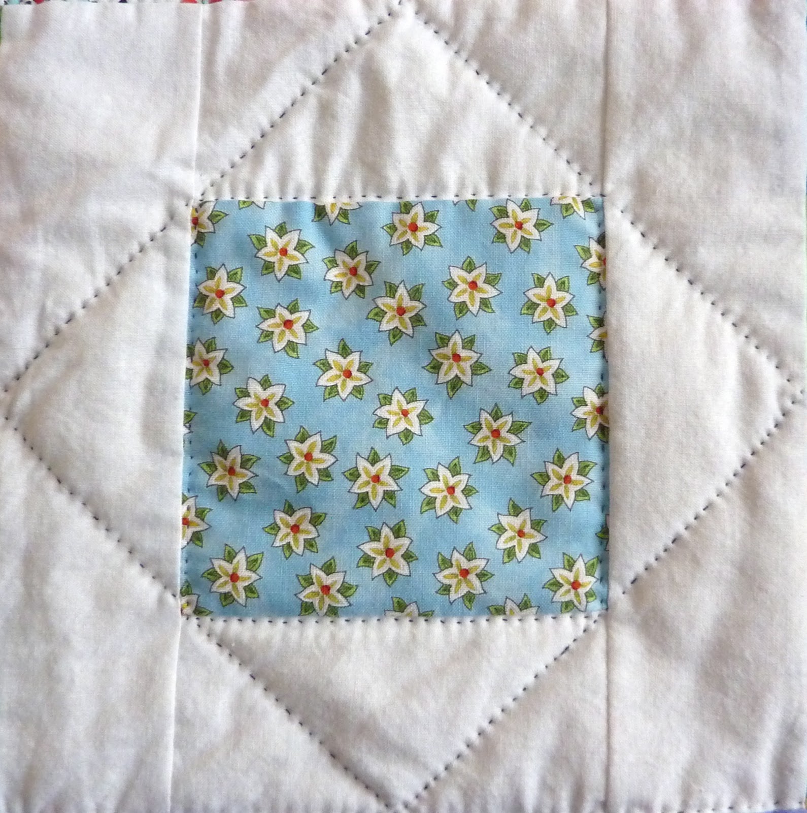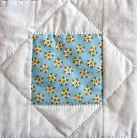 Here are some close up shots of the wonderful quilting...the double 4 patch blocks were quilted with 4 X's, and the squares with white sashing blocks were quilted with diamond shapes.
