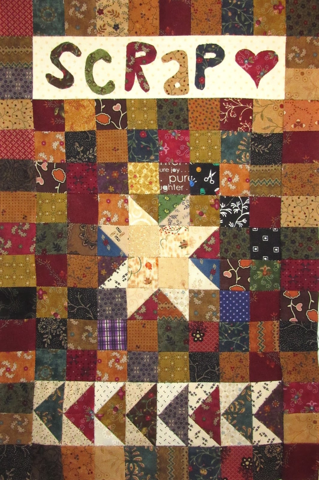 I just finished the Christmas Wreath pattern that was posted in June. It was just like constructing a jigsaw puzzle using pieces of fabric!