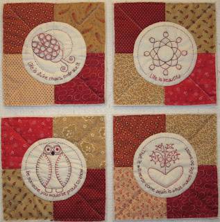Today I will be working on more alternate blocks for my Life Is Beautiful quilt. Here are the 6 that I've quilted so far.