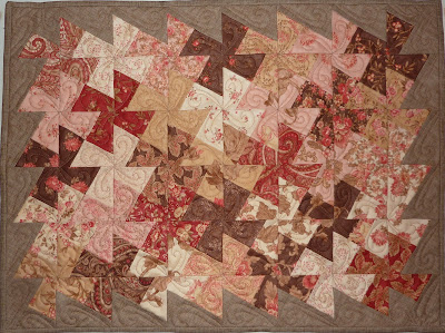 I started to make a Lil' Twister quilt in May when I bought the ruler on a Shop Hop (click here for that post). I finished the top quickly (and loved the technique) and pin basted it... then it waited for a long time while I thought of quilting ideas.