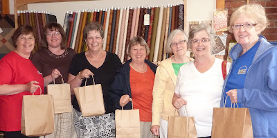 We travelled around New Hampshire today searching for a store that one of the quilters in our group saw in the Quilt Sampler magazine. It is a beautiful quilt store called Quilted Threads and I was able to find a set of fabrics for the mystery quilt that I want to make in the Quiltmaker magazine. I consider myself to be an experienced mystery quilter, but I found it very challenging to pick out 9 fabrics that co-ordinate, yet have enough contrast to be different enough from each other when you don't know which fabrics will be beside each other in your quilt. (To see 3 possible colourways - click here.) I couldn't decide on fabric #7 so I bought 2 possibilities. I think my choices will make an interesting (but maybe not visually appealing!) quilt.
