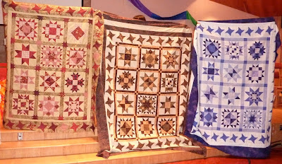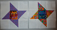 I also love sewing quilt blocks and here are the 2 most recent blocks for the guild mystery quilt. (Oh yah...I love mysteries too and have to pull out some fabrics from my stash for