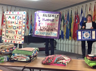 The Halton Hills quilt show is coming up in October so there was a lot of excitement about planning for that. It's a big undertaking to plan a quilt show and organize all the volunteers required to make it successful. At the meeting I got to see a couple of the quilts that will be featured at the show and it promises to be an inspiring event. Hope you can make it if you live close enough!My UFO of the month is finally getting some attention. Nothing like leaving it until the last minute, since it's the last week of September!