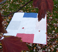 And what's on the back... the leftover pieces that didn't get used on the front! All the leaves are falling from our trees this week, and I couldn't resist a photo op in the backyard!