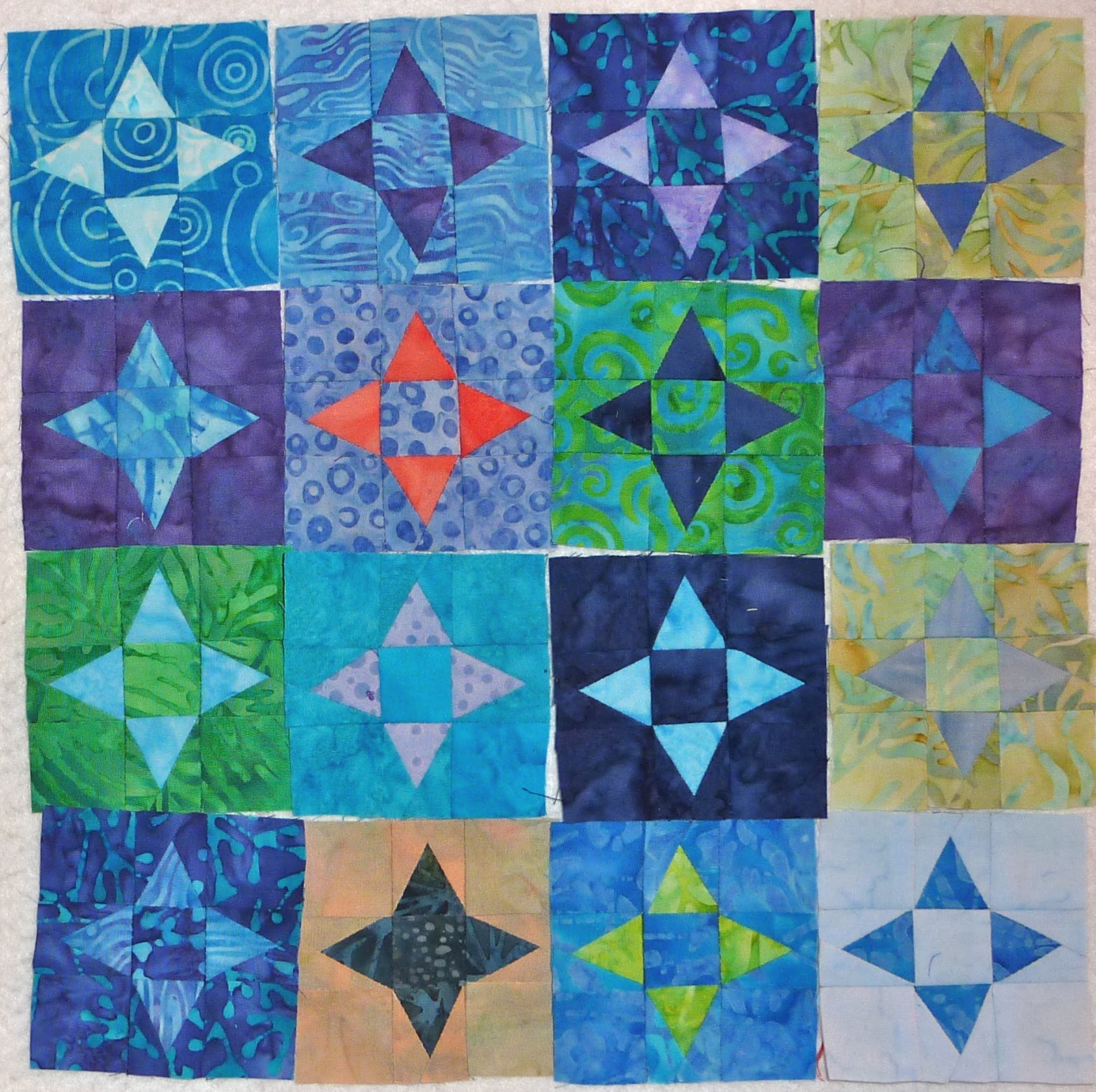 I used the light triangles as the centre pinwheel for this block. I like it and think I'll do more block centres like this one has.